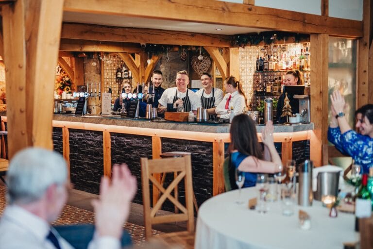 Ar ôl hynny, dewch i ddathlu gyda pheint neu goctêl yn heulwen braf y teras a gwledda yn ein neuadd dderw lle bydd digon o oleuni naturiol i ddangos y wlad o’ch amgylch yn ei holl ogoniant. Yna, yn goron ar y diwrnod, bydd y parti’n parhau yn hwyl yr hen sgubor. Popeth sydd ei angen i gael dathliad gwerth chweil; yr unig beth i’w ychwanegu yw’r gwesteion.